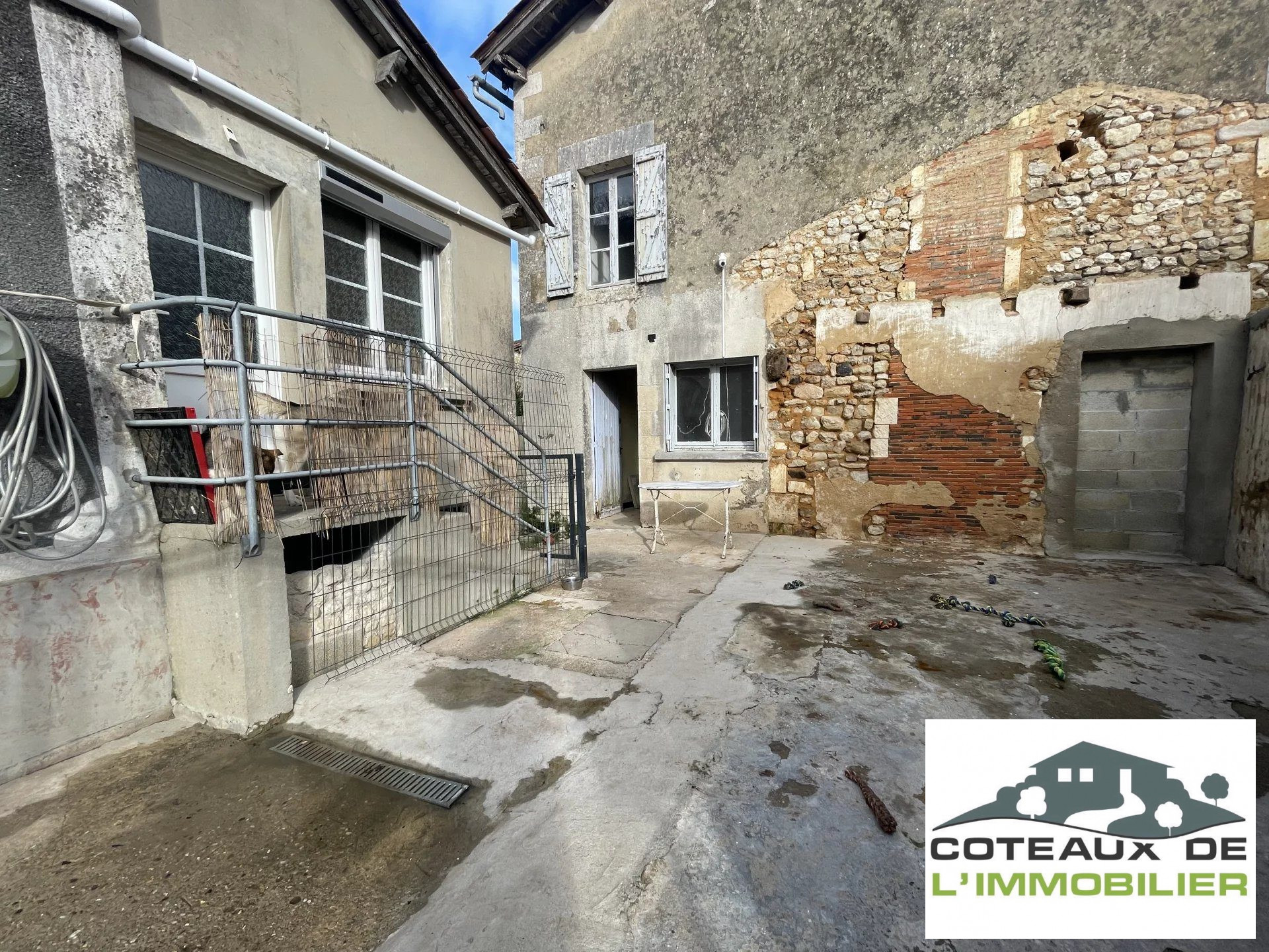 Ensemble immobilier au cœur du village de Pérignac Idéal pour une résidence principale, un projet locatif, cet ensemble immobilier offre de nombreuses possibilités : 1ère maison (à finir de rénover) •Rez-de-chaussée : entrée sur un salon/salle à manger avec poêle à granulés, cuisine, salle d’eau et WC. •À l’étage : 2 chambres, une mezzanine et un dressing. •Extérieur : cour fermée 2ème maison à rénover •Rez-de-chaussée : 2 pièces •À l’étage : 2 pièces supplémentaires •Double garage attenant avec grenier Autres atouts •Terrain non attenant de 1 105 m². Situé dans un village calme et agréable, cet ensemble immobilier bénéficie d’un fort potentiel. Une opportunité à saisir pour les amateurs de rénovation ou ceux en quête de tranquillité.